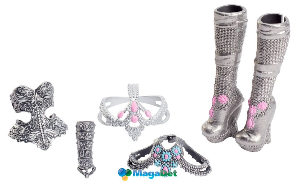 В комплект также входят другие аксессуары, например, шикарный браслет, а также стильное ожерелье такой красоты, которой достойны только королевские особы. Ваша маленькая принцесса сможет найти здесь кое-что и для себя: кольцо-печать с изображением первой буквы имени Дарлинг Чарминг.