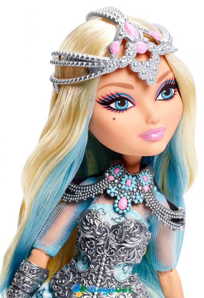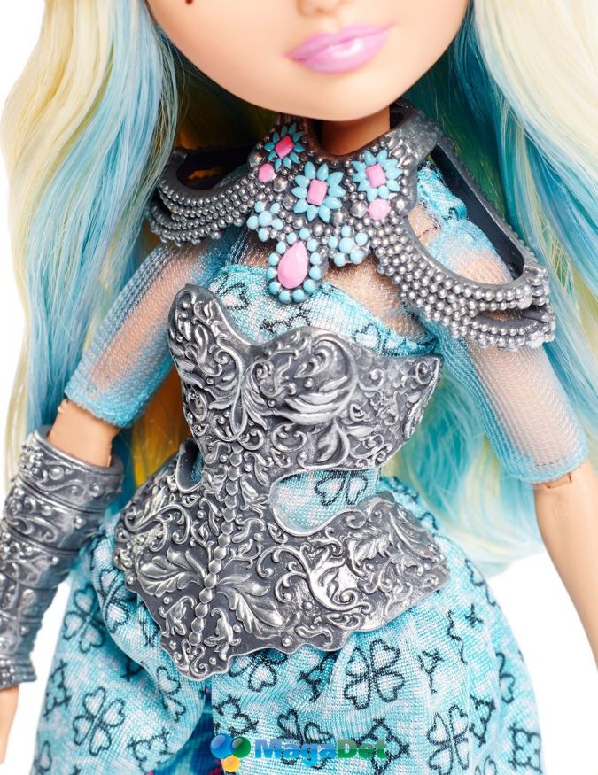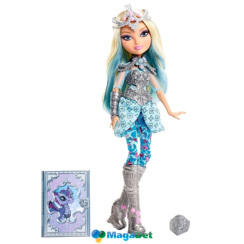 В данном наборе можно найти красавицу-куклу с пышными белокурыми волосами, которые украшает элегантный головной убор. Дарлинг одела изящные доспехи, ведь с драконами не всегда можно сразу поладить. Шарнирное строение рук, запястий и ног куклы позволяет ей принимать различные позы.